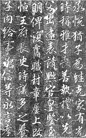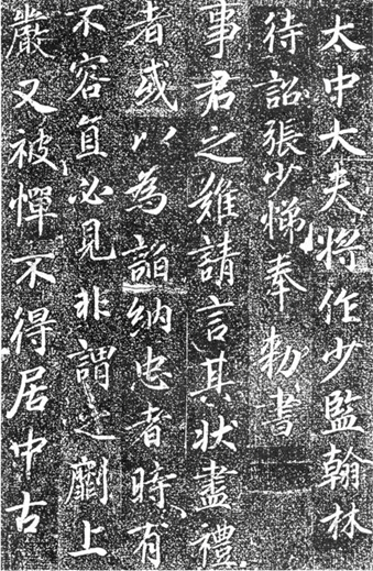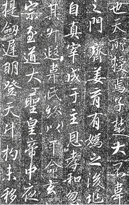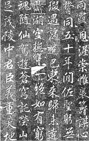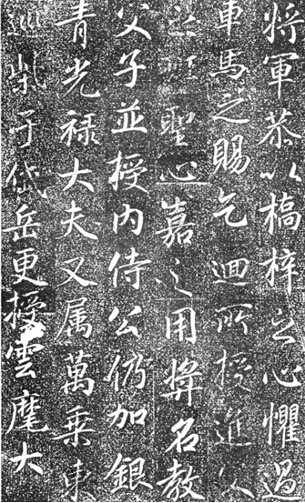《高力士神道碑》与前铭已经大不相同。如果说《高力士墓志铭》还能比较明显地感觉到王羲之《圣教序》和颜真卿《多宝塔》的气息的话,这块神道碑就显得自由多了,它已经摆脱了拘谨而有更多性情的流露。在结字法和篇章呼应关系上,舒展而洒脱。前铭偏于行楷,此碑则为行草。后者更趋成熟和富有个性,有了自己的特征。同时也感觉上离《圣教序》的气息更近了,但张少悌似乎一直没有走出《圣教序》的影子。这种感觉要更甚于李邕诸碑。张少悌算得上盛唐书家中继《圣教序》而承晋法的杰出者。