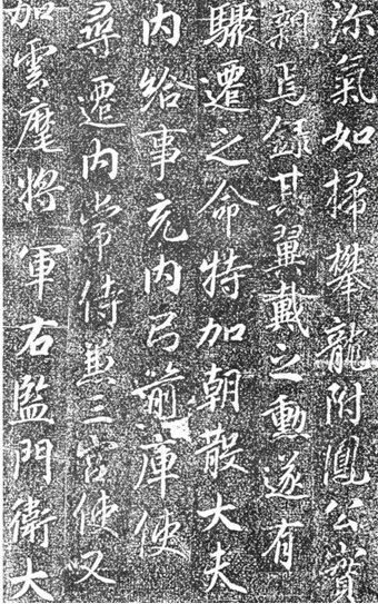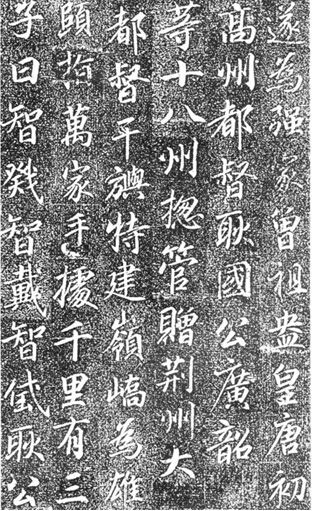 《临淮王李光弼神道碑》四十行,行八十二、三字不等。但这块书写时间与《高力士墓志铭》仅相差一年的名碑,“碑字漫漶,见明拓本,不多字,漫漶中略有字口”1。故只闻其名而已。