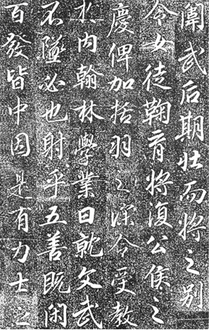 唐代行书书碑,尽出于《圣教序》,自高正臣、李邕而下,莫不如是。李邕虽非首创,但打开局面有赖于他,故享大名。