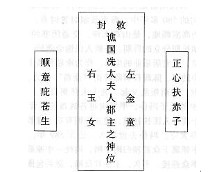 梁、陈、隋三代在岭南的平稳过渡和政局稳定,系冯冼氏族的丰功伟绩。自隋文帝统一中国后,对海南岛的统治就日益加强了,政局稳定,民族团结,改变了海南岛孤悬海外,与世隔绝的“蛮荒”状态,加速了海南俚民的汉化,促进了海南经济、文化的发展。据《旧唐书》卷109载:七世纪冯盎任高州总管时,其管辖范围除广东西南部外,还直接控制海南岛的崖、儋、振三州。而唐代第二位皇帝李世民继位后,崖州总管还未领有儋州,此州仍由高州总管冯盎治理。冯盎“封越国公,……奴婢至万人。领地二千余里”。又据日本•谈海真人元开撰写的《唐大和尚东征记》载:唐天宝七年(748)七月,鉴真偕同日僧荣睿、普照等僧俗、水手32人,于浙江绍兴启航第五次东渡日本,不幸遭遇台风,14日漂流至海南岛振州宁远河口,该州别驾冯崇债派遣400余甲兵迎护,别驾更出廓亲迎。后来,鉴真和尚一行北返,途经万安州,在豪富、崇债宗亲冯若芳家下榻3天,使身居富甲天下的扬州和尚也为之惊讶。冯若芳的奴隶之多,不是以人关计算的,而是以住地的广袤来表示的,即其奴隶住地范围南北向要步行3日,东西向更要花5天时间。据1941年日本的小叶田淳在《海南岛史》一章二节推断,唐代振州别驾冯崇债应是冯冼家族在海南汤沐邑领地的后代。因此,自隋唐至今,冯姓已成为海南岛上的一大望族。在海南冯氏族谱中,都十分明确记载他们是冯宝、冼夫人的后代。今天,不少冯姓的公婆屋(祖宅)还保存着冼夫人的神位。如下图:住在祖屋的子孙,每天晚饭前烧香祭祀,逢年过节还要备三牲、酒饭祭拜,作为纪念先祖。