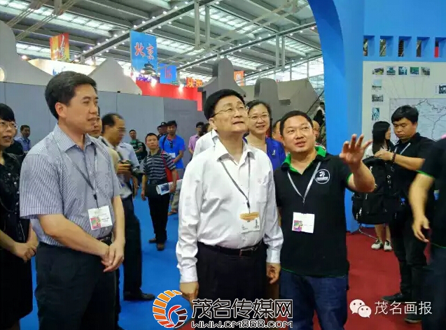 方健宏厅长与画报社参展工作人员亲切交流,并对潘茂名的动漫形象设计进行了询问了解。