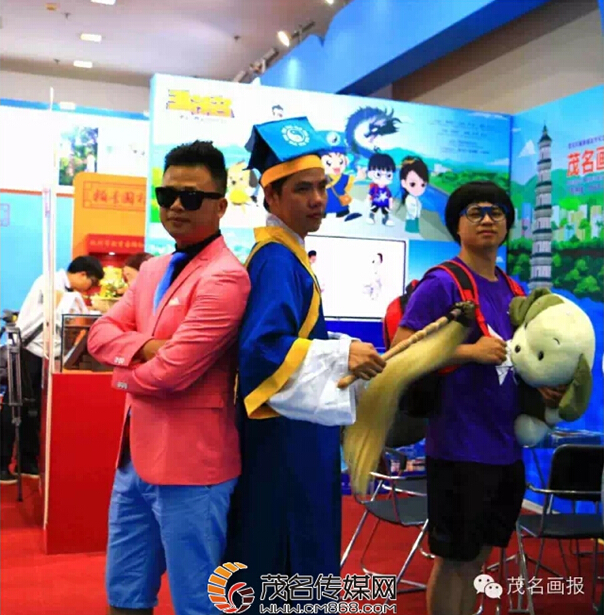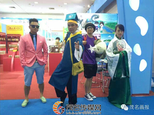在茂名画报杂志社展位前,潘茂名、橘红狗、荔枝姐等形象的动漫真人cosplay,成为茂名展馆一大亮点,吸引众多观众围观,纷纷留影拍照。