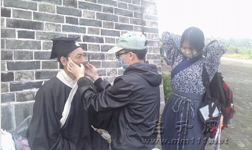 《潘茂名传奇》摄制组的各路人马:如摄影组、灯光组、服装组、化妆组、道具组、场务组等都紧张地忙碌着。尤其是几个年轻的化妆师与几个中年的女服装师,忙得更是不可开交,他们正在给群众演员们化妆。