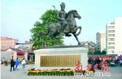 坐落在高州城冼太文化园的冼夫人铜像英姿飒爽。