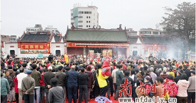 广东省文物保护单位高州城冼太庙香火鼎盛,人头涌涌。