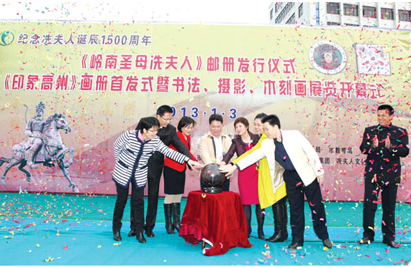 《岭南圣母冼夫人》邮册发行仪式和《印象高州》画册首发式暨书法摄影木刻画展览开幕式同时启动