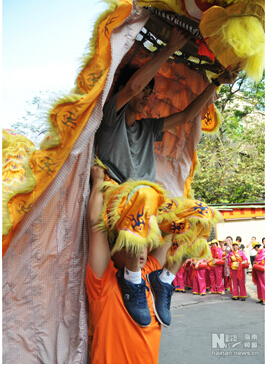 冼夫人“出征前”的舞狮助兴。
