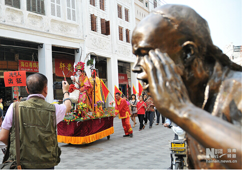 “出征”队伍经过海口中山路骑楼老街。