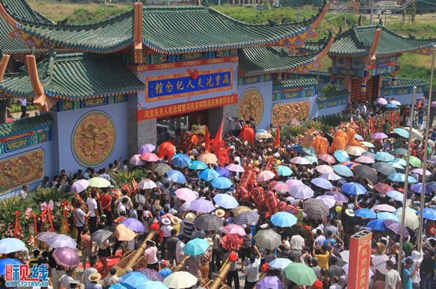 海南前线10月1日消息(周宗贵 文/图)10月1日,海南省冯宝文化研究会、海南冯氏宗亲会在海口市新大洲大道冯村举行海南冯宝冼夫人纪念馆暨冯氏宗祠落成典礼。泰国、新加坡、香港、澳门、海南等海内外琼籍乡亲近万人参加了仪式。