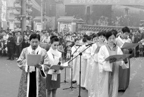 3月1日,2012年第十一届中国(海口)冼夫人文化节秀英分会场在荣山村冼夫人纪念馆举行开幕式暨公祭大典。 本报记者 徐善应 摄