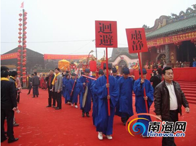当天上午9时,开幕式就在道长的巡游锣鼓声中开始,接着群众还在庙前进行鸣钟击鼓、恭读经文、祭拜夫人、献恭进香、拜祭圣母等仪式。