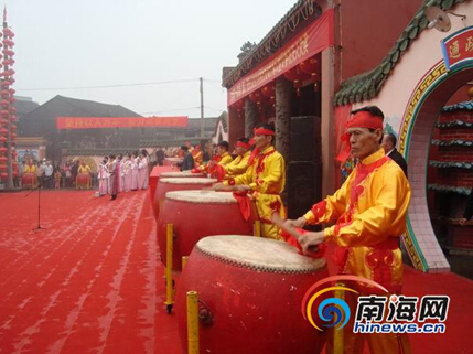 海口冼夫人文化节秀英分会场在荣山村举行开幕式上的击鼓表演。(南海网记者孙令正摄)