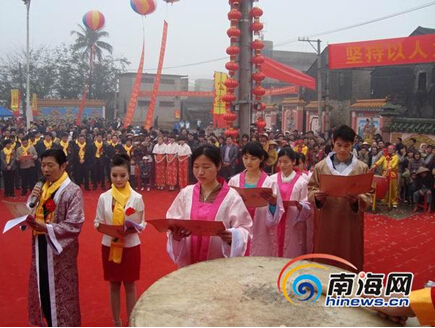 南海网海口3月1日消息(南海网记者孙令正)3月1日上午,2012年第十一届中国(海口)冼夫人文化节秀英分会场在荣山村冼夫人纪念馆举行开幕式暨公祭大典。省市相关领导及秀英区和西秀镇荣山村的群众近两千人参加了当天的活动。