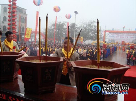 海口冼夫人文化节秀英分会场在荣山村举行开幕式上的上香仪式。(南海网记者孙令正摄)