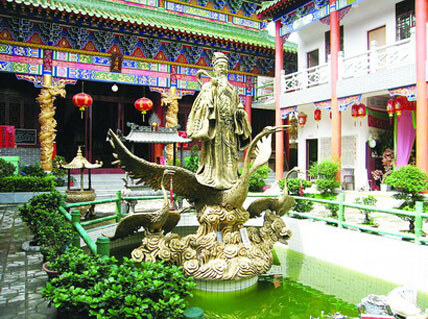 这口古井,说来又有一段故事。传说潘茂名上东山取药,下潘坡炼丹时,烟通鉴江西岸观山上的玉井则为白烟,烟通观山稍北一里,仙井岭上的金井则为黄烟,观山是潘茂名坐石船飞升处,因此,又名升真冈。明太守张邦伊在这里建立了观山寺。清嘉庆二十三年(1818年),在观山之东又建有潘仙殿,以奉祀潘茂名。广东省道教协会副秘书长、广东省第十届人大代表、茂名市道教协会会长、高州市潘仙观主持丁宗猴说:“我市小观山的这间道观,于2005年竣工投入开放使用,这里的建筑是仿明清建筑,四合院的形式。这个道观建成之后,吸引了很多当地和外地的游客来了解茂名。”